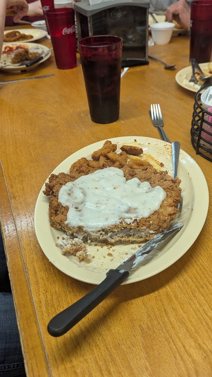 The menu leans into classic, satisfying dishes that keep people coming back. One of the most talked-about plates is the Chicken Fried Steak, cooked until golden and hearty, the kind of meal that defines Southern-style dining. Seafood fans gravitate toward the Fried Shrimp, crisp on the outside and full of flavor, while the Baked Fish offers a lighter option that still feels filling and well-prepared. For casual bites, Nachos are a solid choice, especially when you’re in the mood for small plates to share. The Hamburger Steak rounds out the highlights, delivering a straightforward, no-frills dish that feels both nostalgic and dependable.